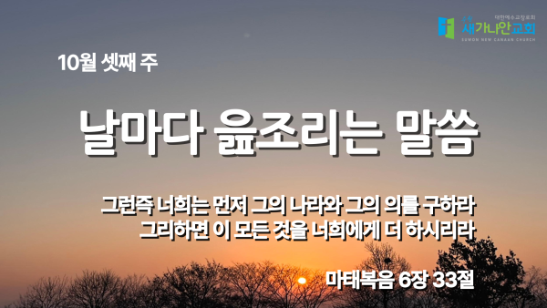 [마6:33] 그런즉 너희는 먼저 그의 나라와 그의 의를 구하라 그리하면 이 모든 것을 너희에게 더하시리라